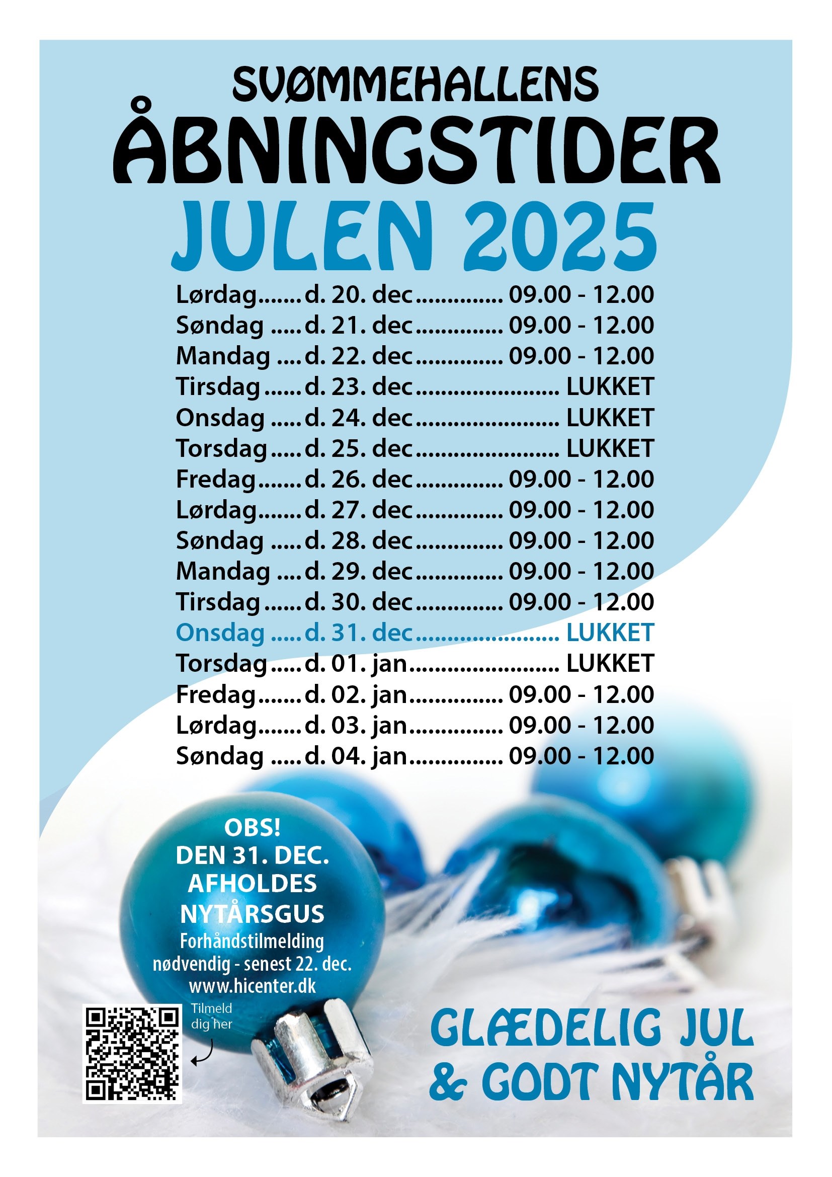 SVØMMEHALLENS ÅBNINGSTIDER I JULEN 2025